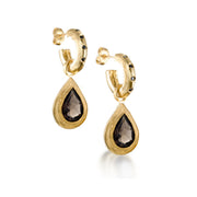 Black Spinel Hoop Earrings With Smokey Quartz Pear Pendant