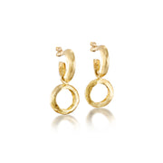 These hoop earrings measure approximately 3 cm/ =1 1/8″ inch from top to bottom. The earrings can be worn as a hoop or a hoop with a pendant. The earrings hug the ear and create a nice stylish shape with the way they interact with our body. The round pendant has the same light hammered texture as the hoop. The hoops open easily with a friction back and can be separated from the pendant to be worn by itself.