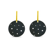 Sterling silver round pendant earrings with round cut holes. Round discs are oxidized.