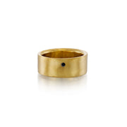 7 mm wide band 1.5 thick. .025 carat round black diamond is flush set. Matte finish.