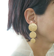 Three Circle earrings, geometric earrings, statement earrings. These earrings are forged from sterling silver or sterling silver with 18k yellow gold vermeil plating .