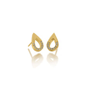 Classic, timeless, and elegant at its best. Pear shape earrings with 18 diamonds are set in a row of pave setting to define the geometry of the these studs.