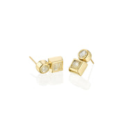 Sculptural delicate stud earrings have a delicate texture that reflects light and create a sense of depth. Earrings are set with routile quartz stones.